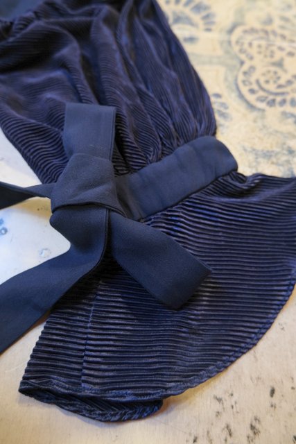 エレガントな3枚重ねのアコーディオンプリーツスタンドカラーに…