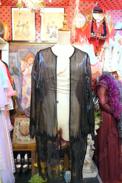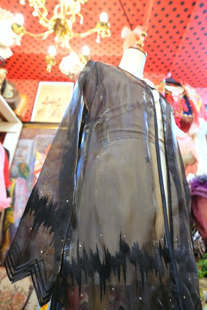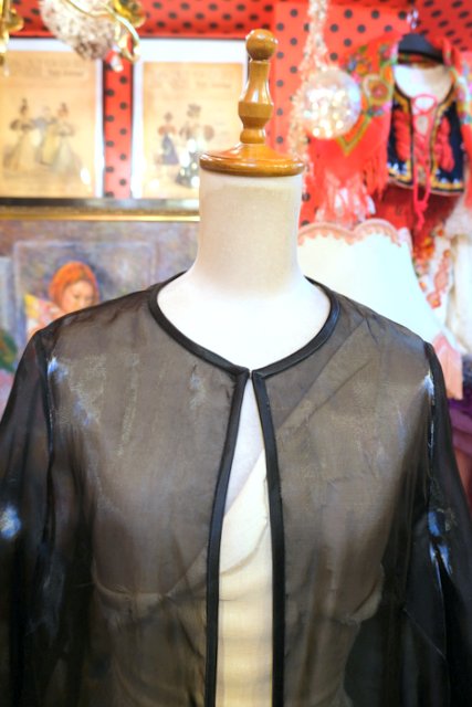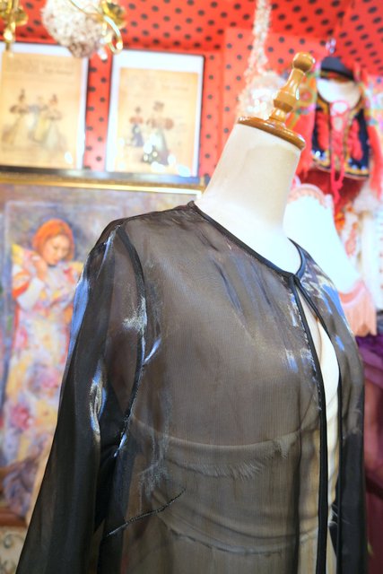 ヨーロッパ古着エレガントモード黒シースルー羽織