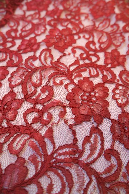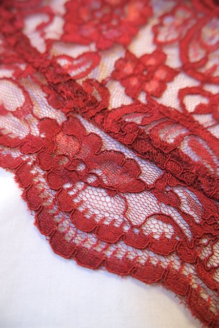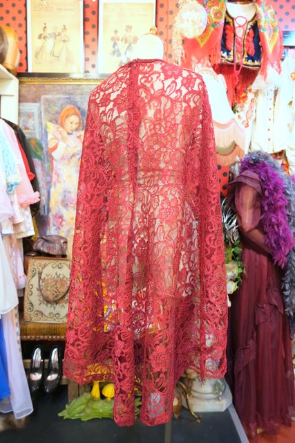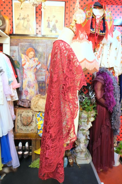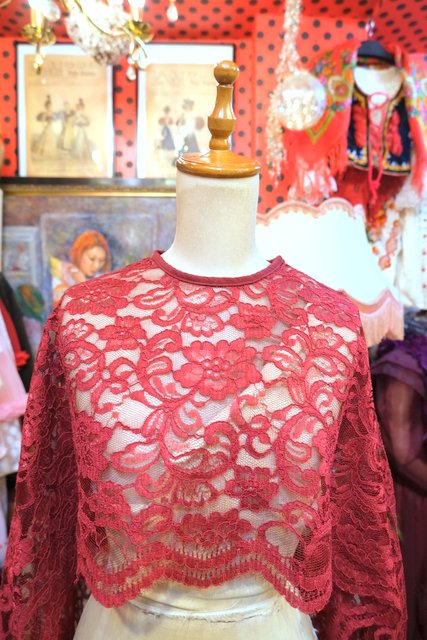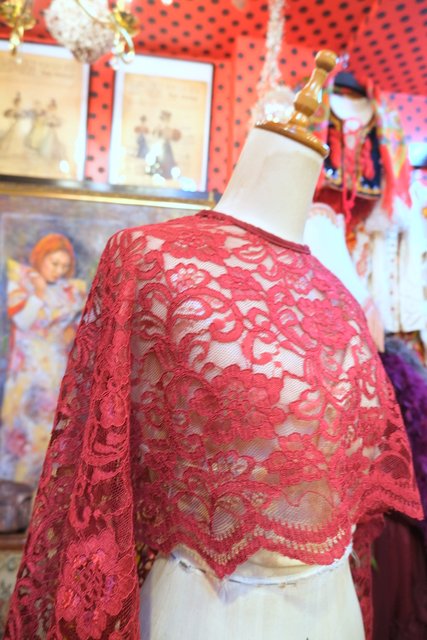 ボルドーワインレッド系のエレガントな花柄レースに前後の長さが違うアシンメトリーが魅力的なヨーロピアンレースポンチョケープ