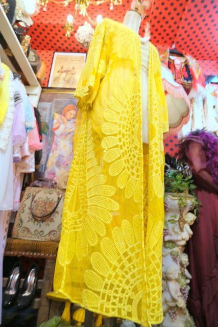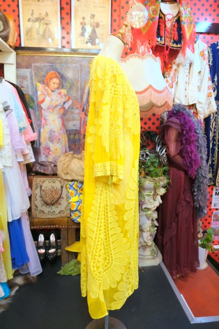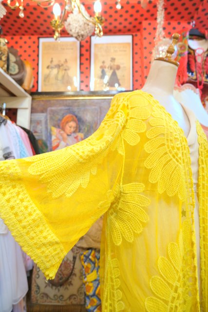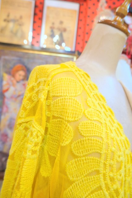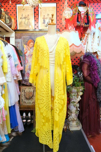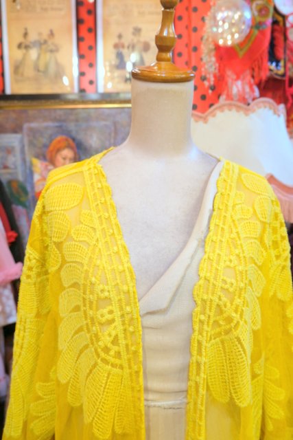透け感がある生地にひまわりのような模様が可愛らしいヨーロピアンロングカーディガン羽織