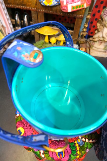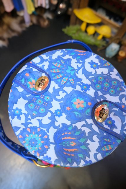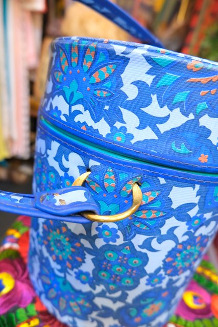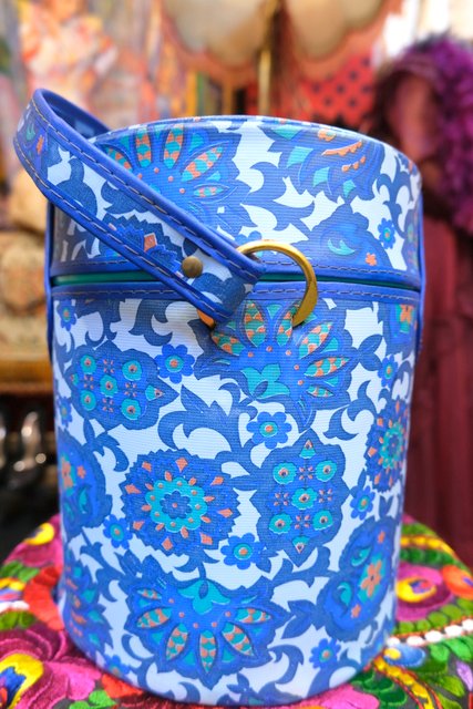 レトロでサイケデリックな総柄にバケツデザインが可愛い1960~70年代頃のヨーロピアンヴィンテージバッグ お部屋のインテリアにもおススメ!