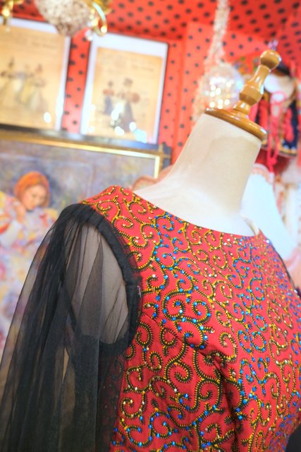レトロポップな2種類のドット切り替えデザインに先の尖った襟が…