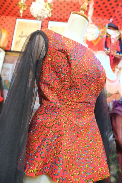 ヨーロッパ古着カラフルビジューエスニックトップス