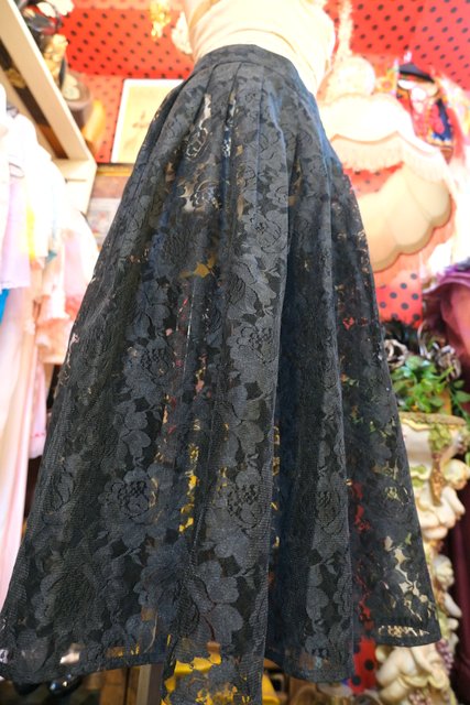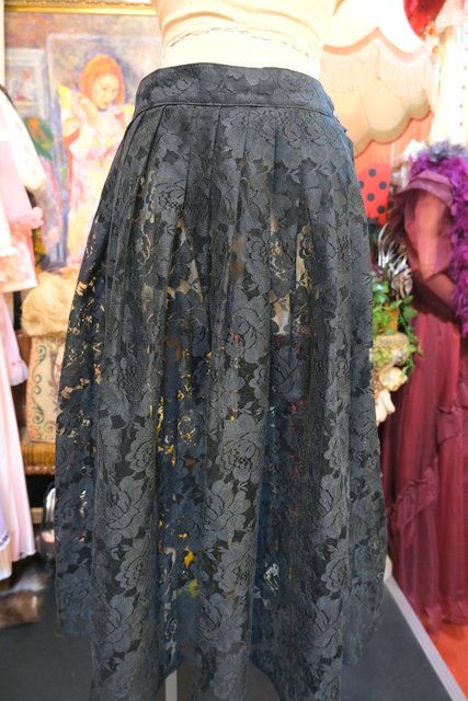エレガントな薔薇総レースデザインにレイヤードスタイルが楽しくなる透け感が魅力的な1980年代頃のフランス製ヴィンテージスカート