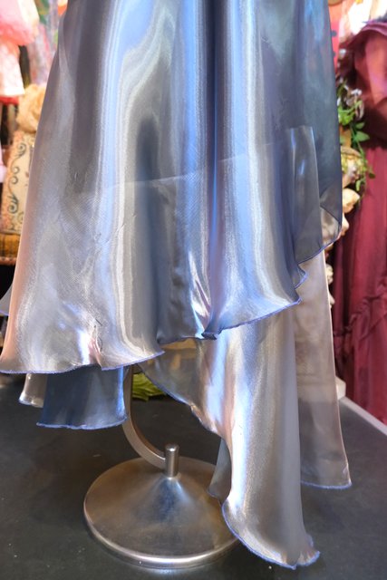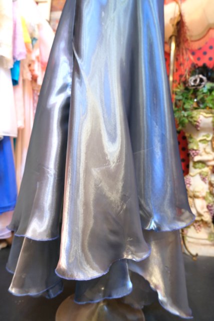 光沢感があるネイビー×グレイのグラデーションカラーにランダムな裾がお洒落なヨーロピアンパーティーロングドレス