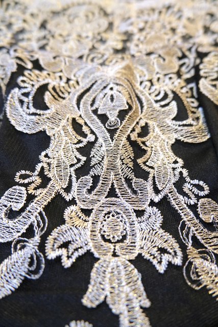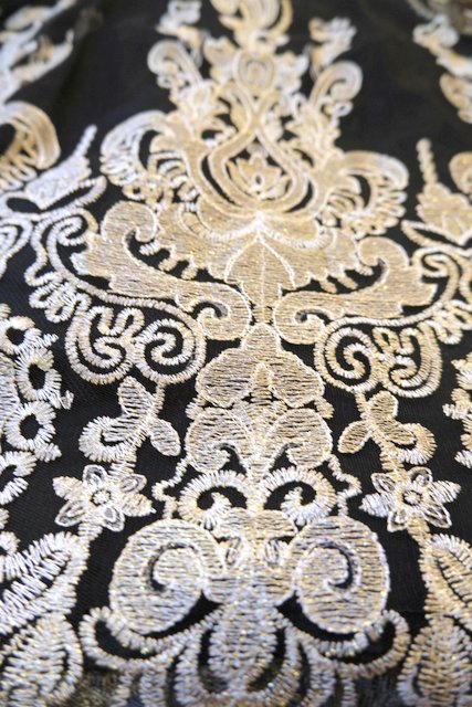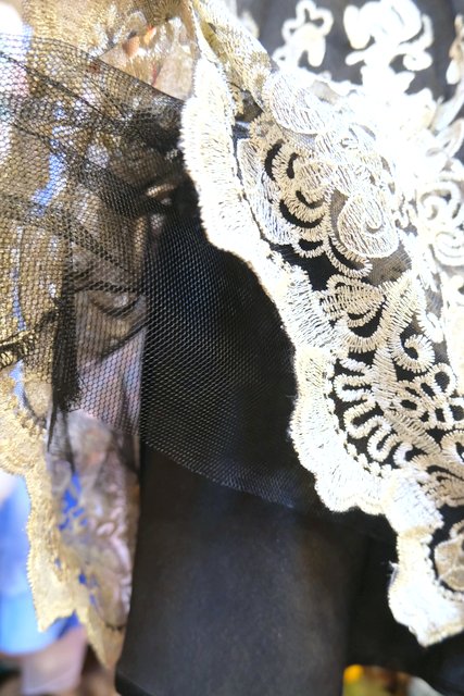 モードな黒チュールにゴージャスなゴールド刺繍や張り感があるハードチュールインナー付きが魅力的なヨーロピアンパーティードレス
