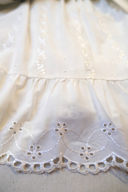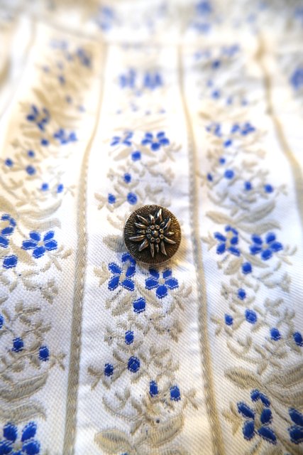 エレガントガーリーな小花柄生地にお花ボタンやクロシェレース、チラリと見える花柄刺繍入りの裏地がお洒落な1970~80年代頃の旧西ドイツ製ヴィンテージスカート