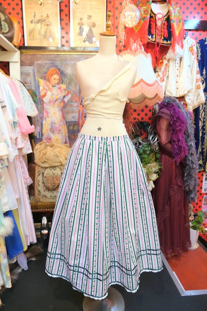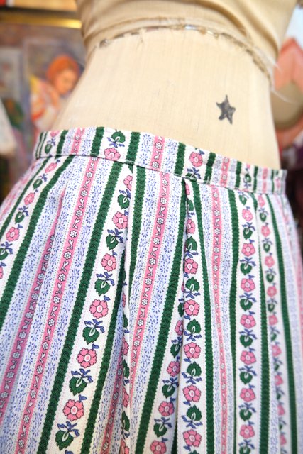 細かい花柄やポップな花柄のストライプデザインが可愛らしい1980年代頃の旧西ドイツ製ヴィンテージスカート