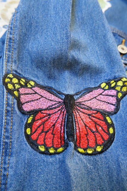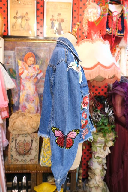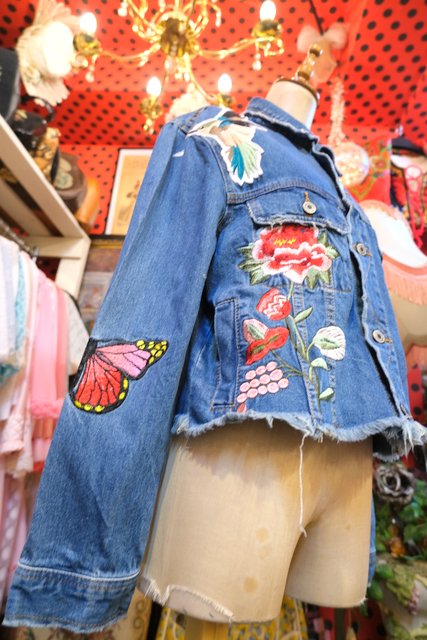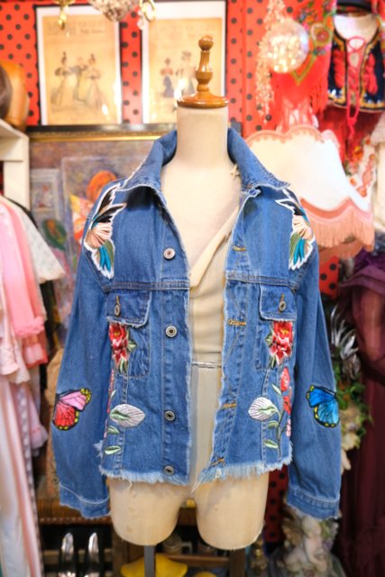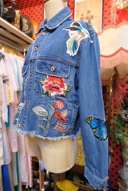 ヨーロッパ古着お花刺繍蝶ワッペンデニムジャケット