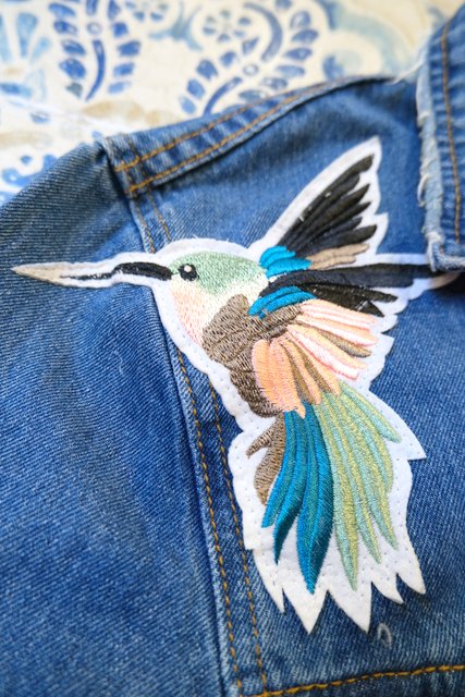目を惹くカラフルポップなお花刺繍×小鳥や両サイド色違いの蝶ワッペンが可愛らしいヨーロピアンオーバーサイズデニムジャケット ★SALE★