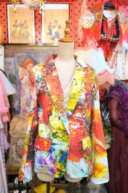 ヨーロッパ古着カラフルゴージャスプリントジャケット