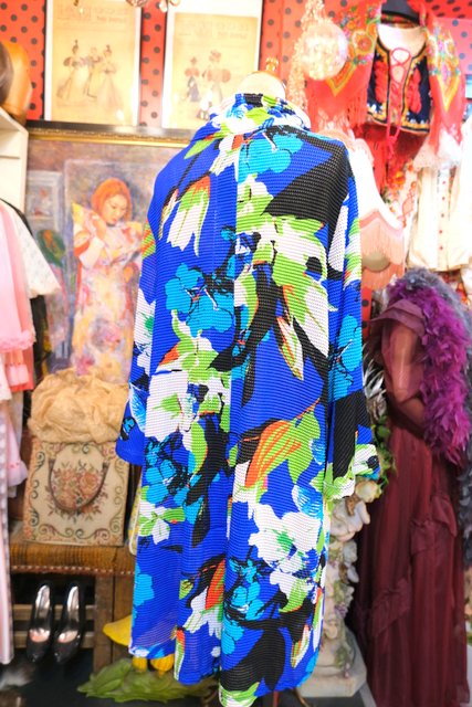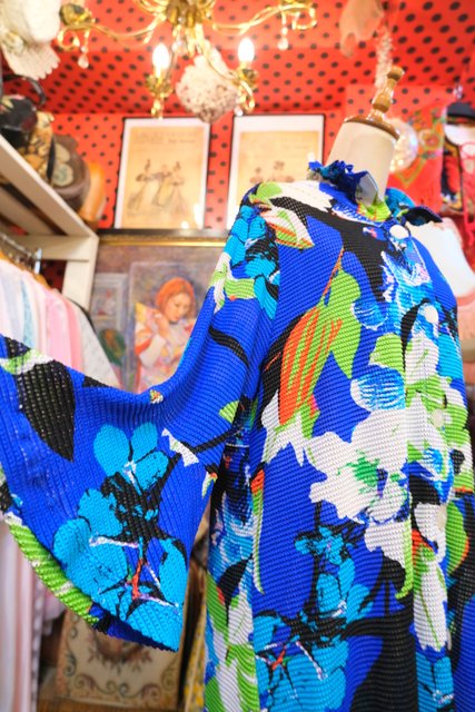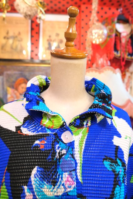 色鮮やかなブルー、白ベースの花柄プリントにサラッとしたワッフル生地やワイヤー入りのネックがお洒落なヨーロピアンマリンシャツジャケット ★SALE★