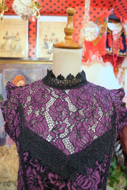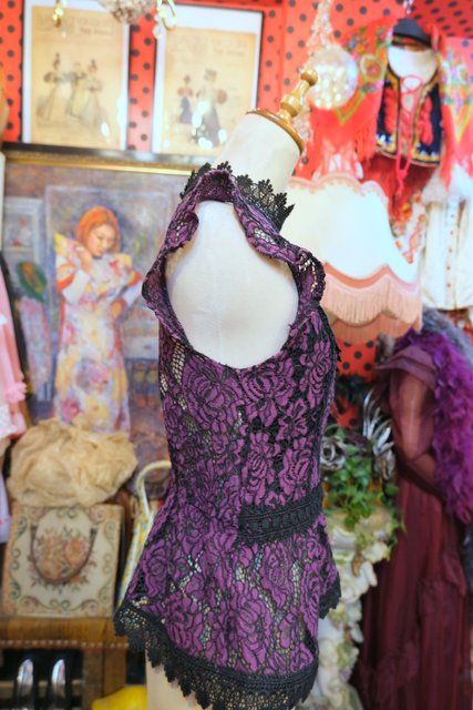 ヨーロッパ古着エレガントセクシー薔薇レースカットソー