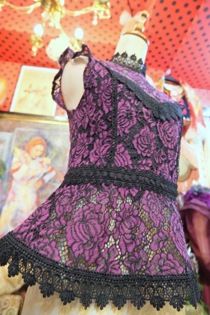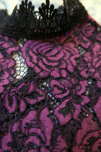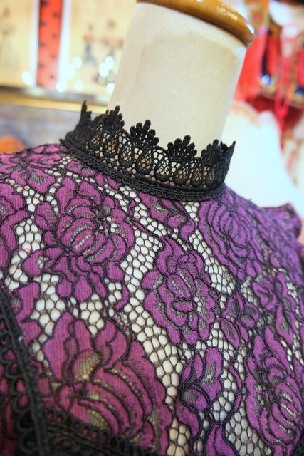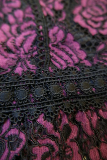 エレガントな薔薇レースに胸周り以外のセクシーな透け感や黒レーステープが素敵なヨーロピアンレースカットソー