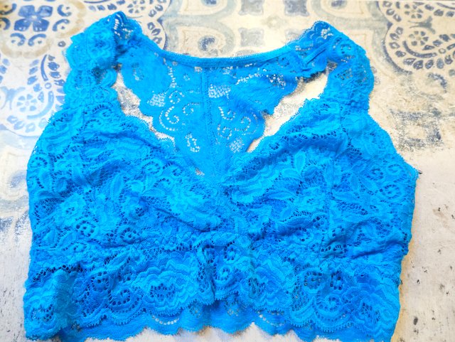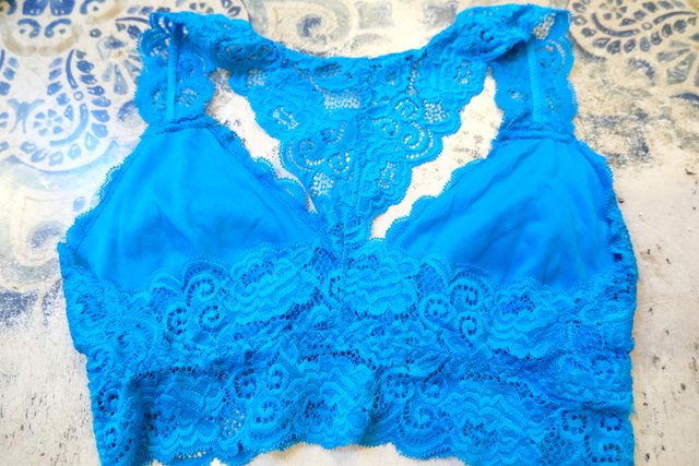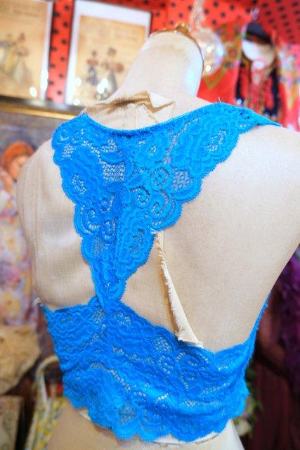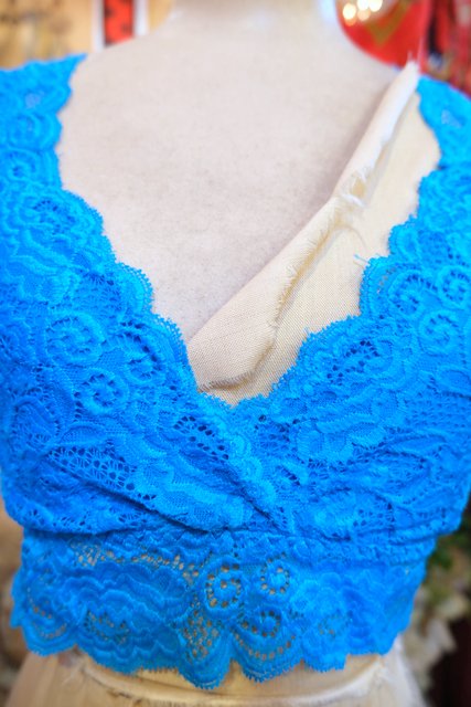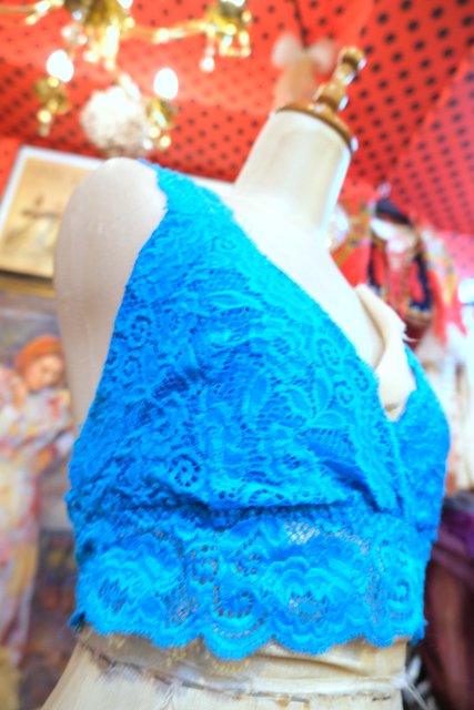 チラ見せやレイヤードスタイルにおススメ!色鮮やかなターコイズブルーレースが魅力的なヨーロピアンレーストップス