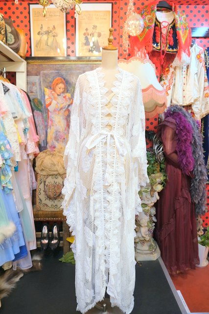 ヨーロッパ古着ボヘミアンヒッピーレースガウン羽織
