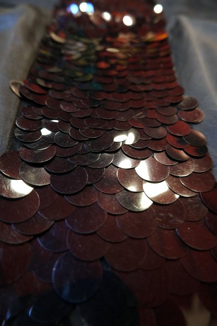 デコルテ周りのセクシーな透け感に裾にかけて大きくなるスパンコールデザインがお洒落なヨーロピアンモードカットソー