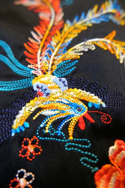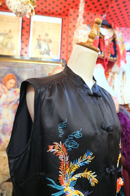 ツルっとした肌触りのよい生地にカラフルな鳳凰やお花刺繍が素敵なヨーロピアンチャイナベスト