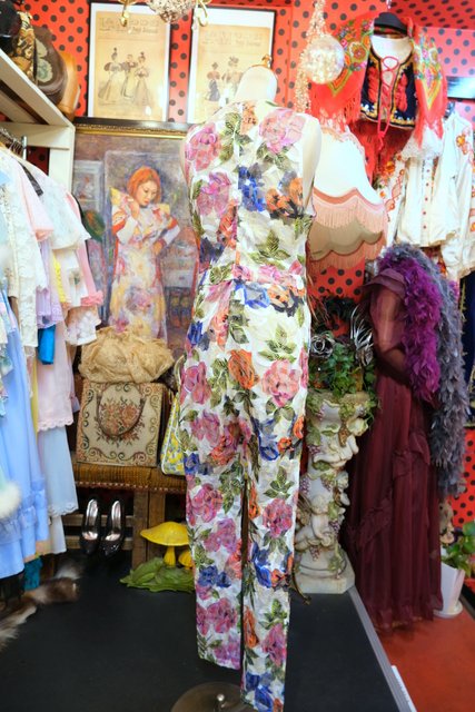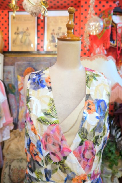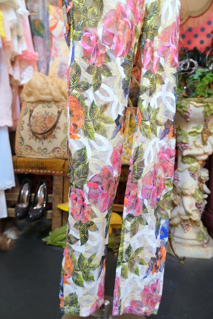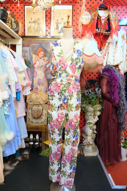 ヨーロッパ古着エレガントラメ花柄ジャンプスーツ