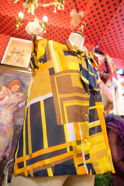 ヨーロッパ古着70sフランス製レトロポップ水玉シャツ