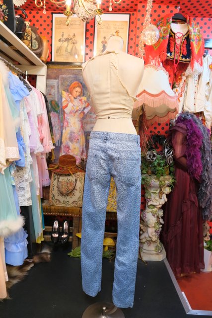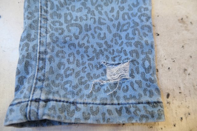 伸縮性がある生地にブルーグレイのグラデーションカラー×ヒョウ柄がカッコいいヨーロピアンスキニーパンツ