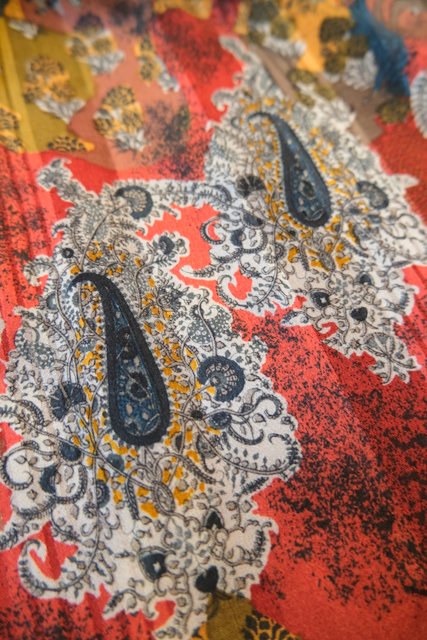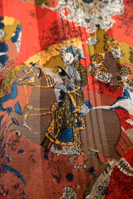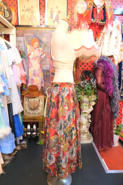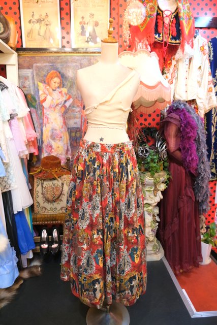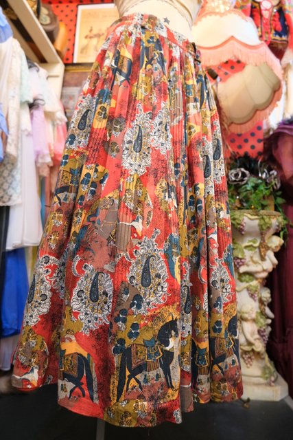 テロっとした質感にレトロ感たっぷりのペイズリーや鷹狩プリントが魅力的な1980年代ヨーロピアンヴィンテージスカート