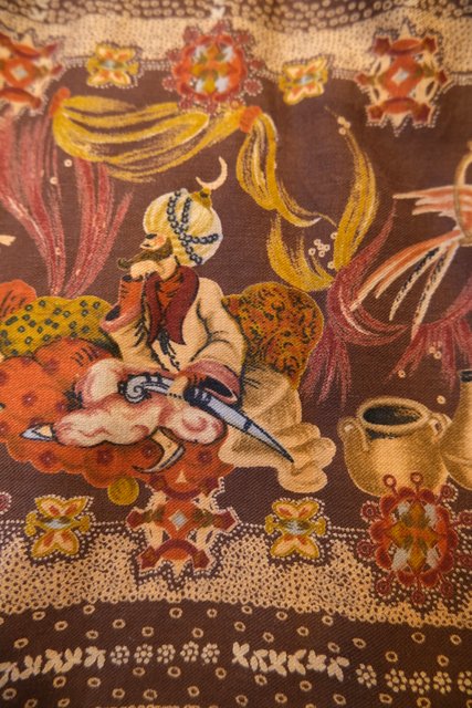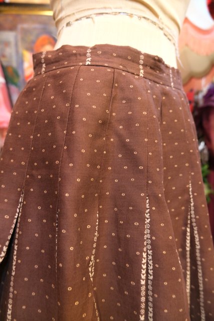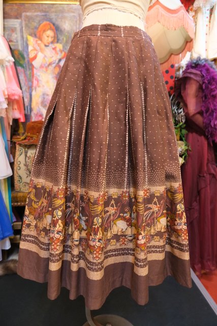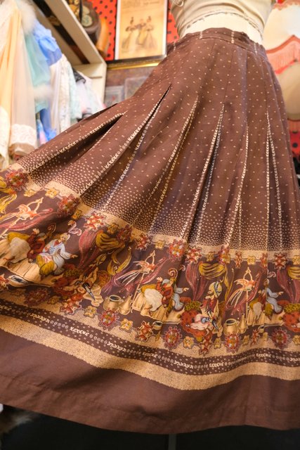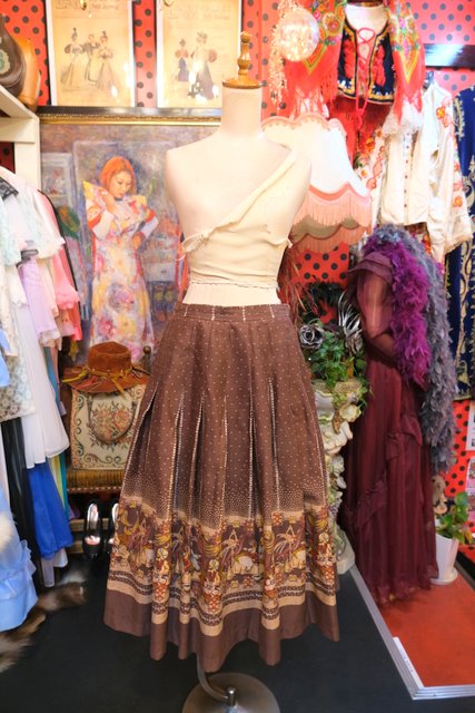 レトロ感たっぷりのアラビックプリントにプリーツ×フレアデザインが女性らしい1970年代頃のヨーロピアンヴィンテージスカート
