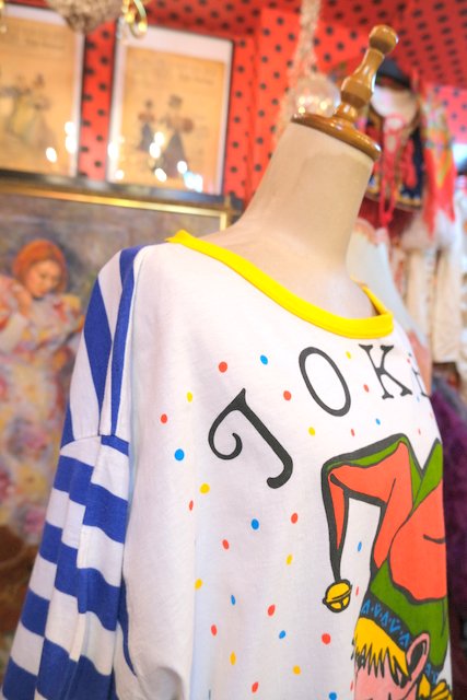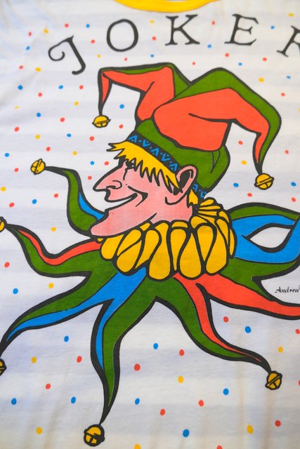 カラフルポップなジョーカー×ボーダーデザインが可愛らしい1980年代頃の旧西ドイツ製ヴィンテージTシャツ