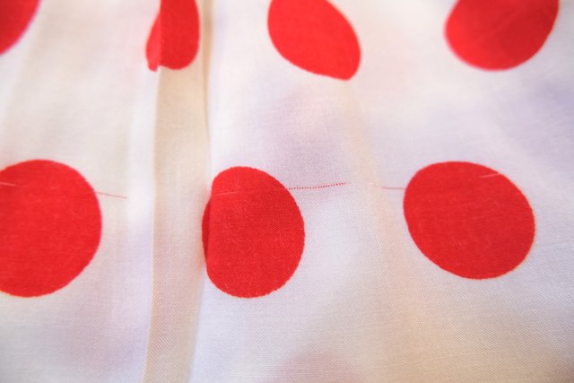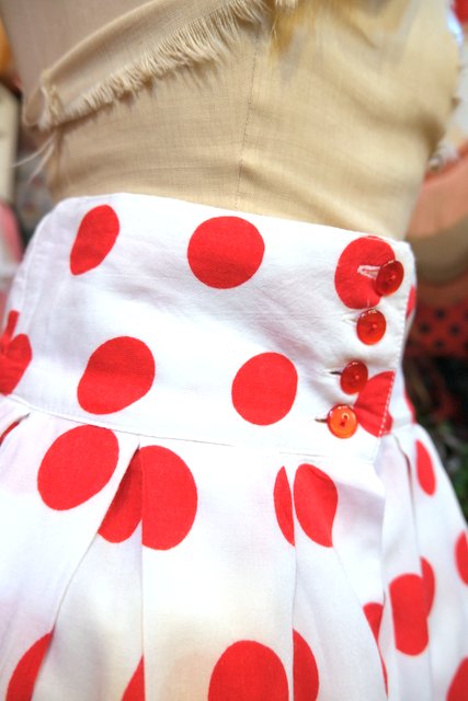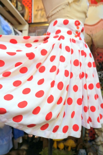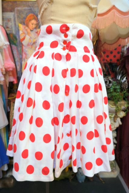 白×赤水玉に幅広いウエストやプリーツデザインが可愛らしい1980年代頃のヨーロピアンヴィンテージスカート