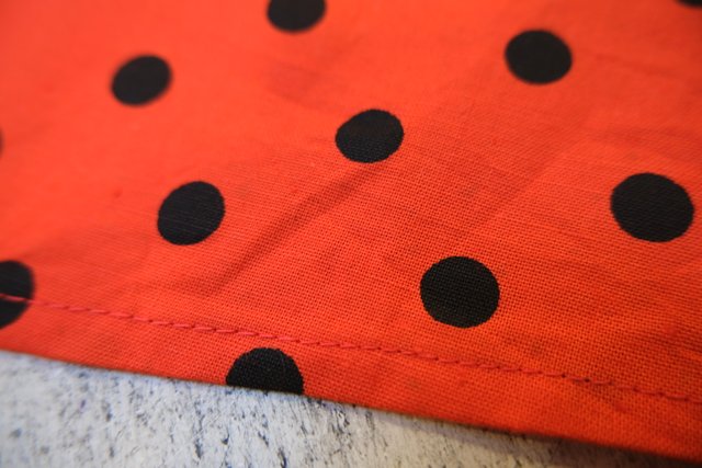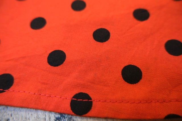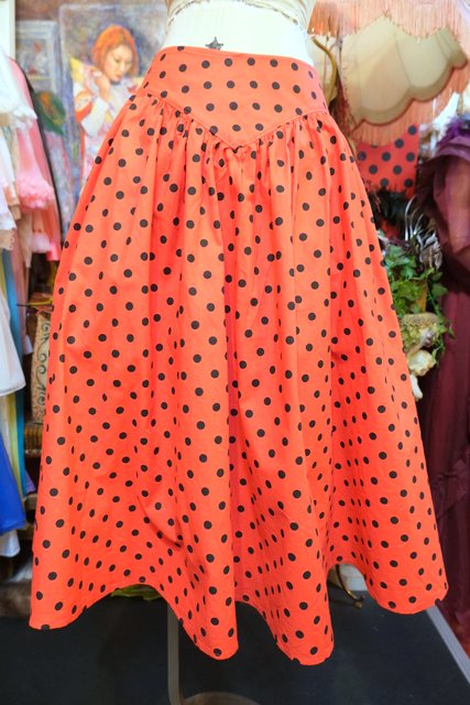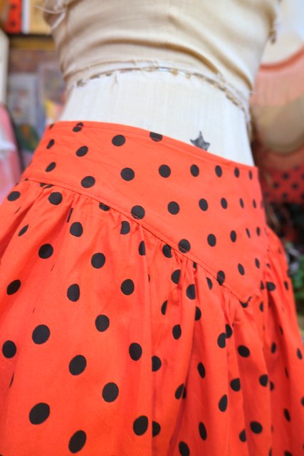赤×黒水玉にふんわり広がるギャザーデザインが魅力的な1970~80年代頃のヨーロピアンヴィンテージスカート