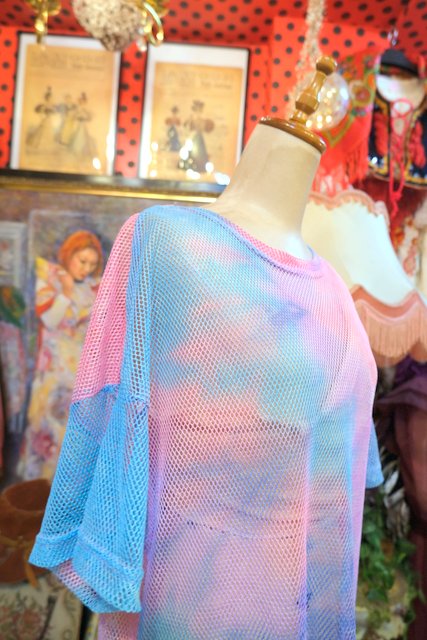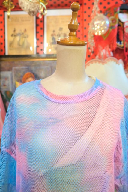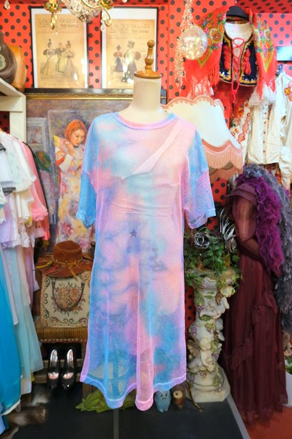 ヨーロッパ古着メルヘンカラーメッシュミニワンピース