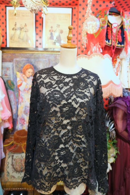 ヨーロッパ古着エレガントゴシック花柄レーストップス