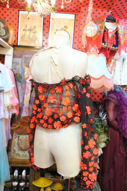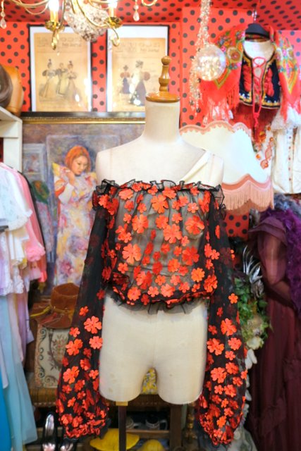ヨーロッパ古着お花デザインオフショルダートップス
