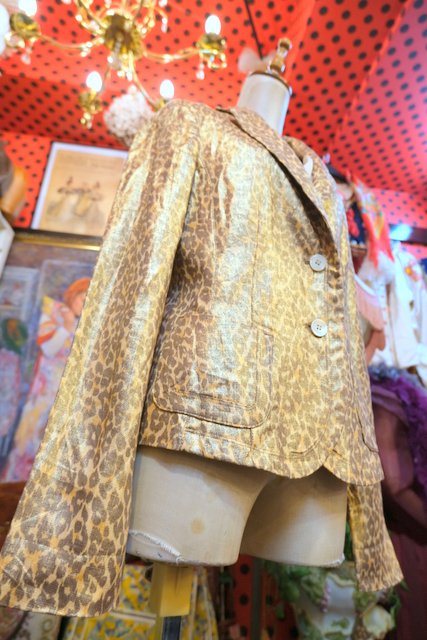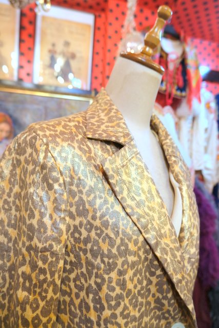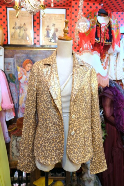 ヨーロッパ古着メタリックレオパード柄リネンジャケット