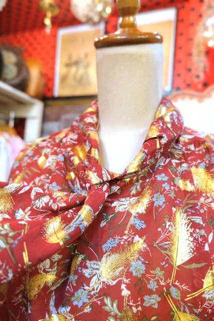 ヨーロッパ古着ゴールドリーフ柄スカーフカラートップス