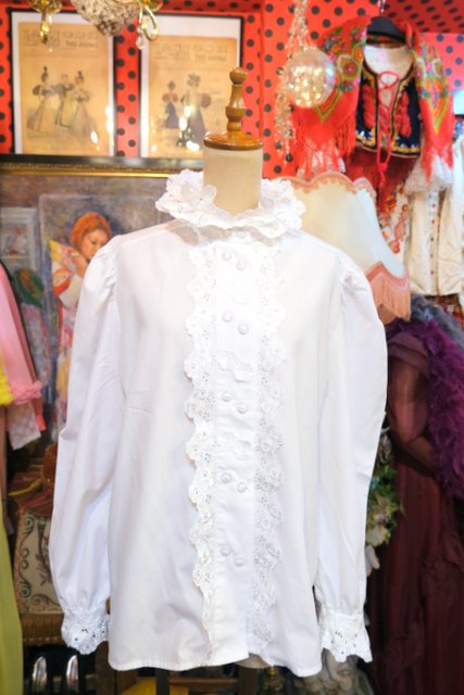 ヨーロッパ古着80sヴィンテージ花柄レースブラウス