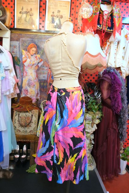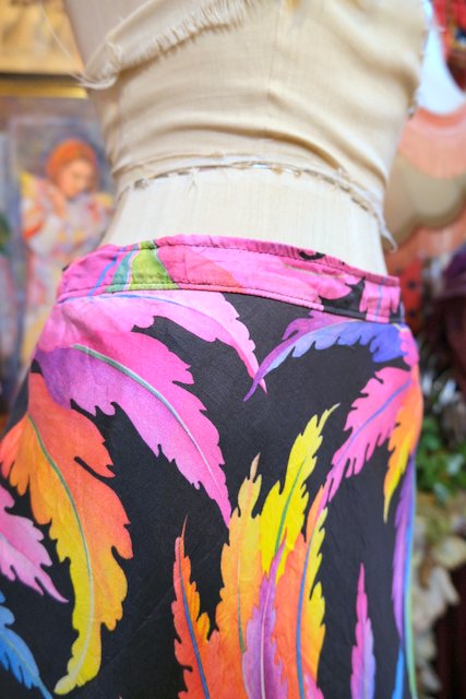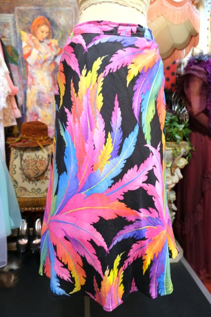 目を惹くカラフルサイケデリックなボタニカル柄にしなやかで肌触りの良いシルク生地が魅力的な1970年代頃のヨーロピアンヴィンテージスカート