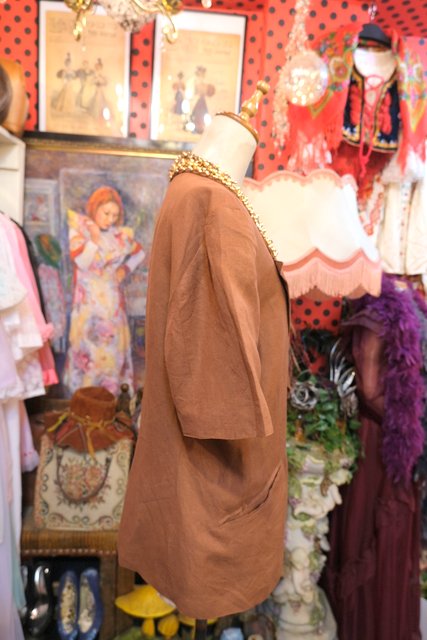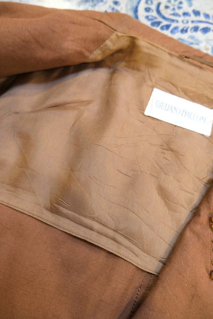 スパンコールやビーズ付きのゴージャス襟にきちんと見えつつもカジュアルにさらっと羽織れ、くしゃっとしてもリネンの良さが引き立つイタリア製Giuliano Fiacconi半袖ジャケット