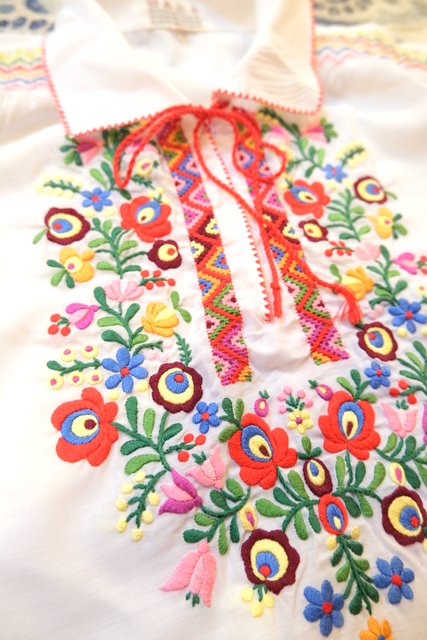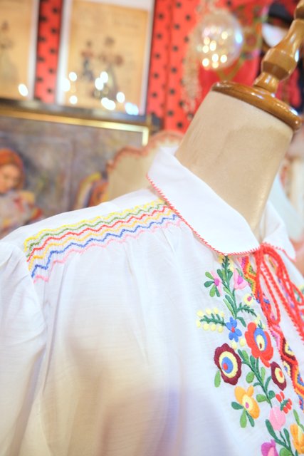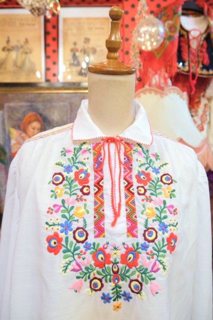 ヨーロッパ古着70sヴィンテージお花刺繍チュニック