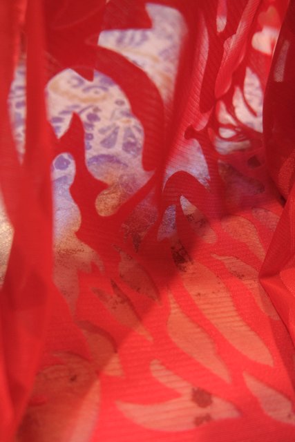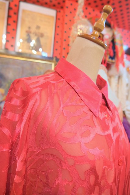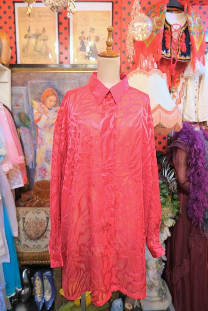 透け感のあるシアー素材にレオパード柄のようなフロッキー加工がお洒落な1980年代頃のヨーロピアンオーバーサイズシャツ
