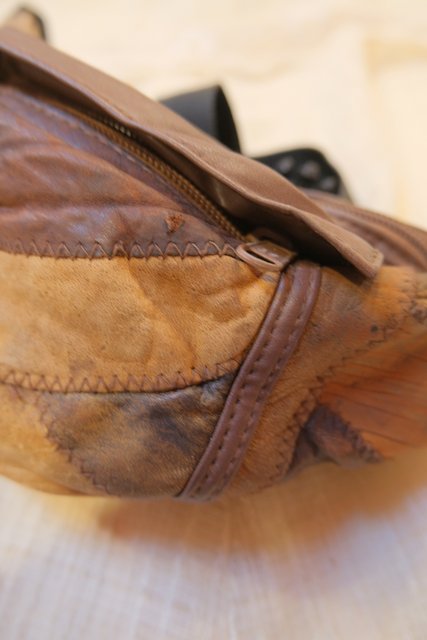 レトロ感たっぷりのレザーパッチワークデザインが魅力的なヨーロピアンボディバッグ 野外フェスやライブにおススメ!