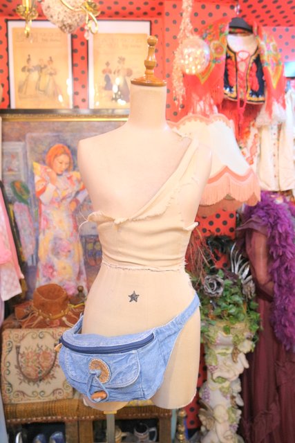 ヨーロッパ古着レトロポップデニムウエストバッグ