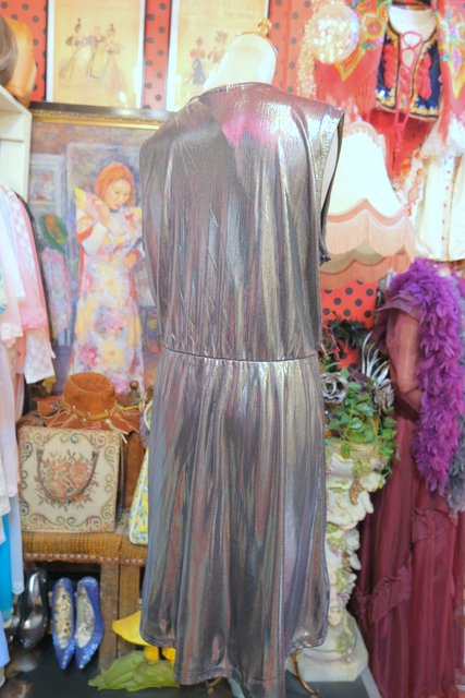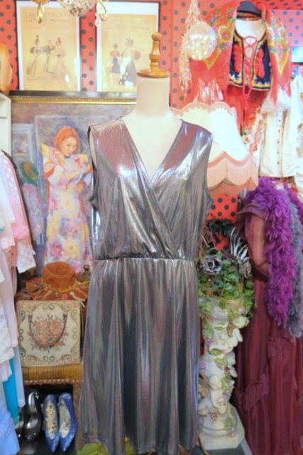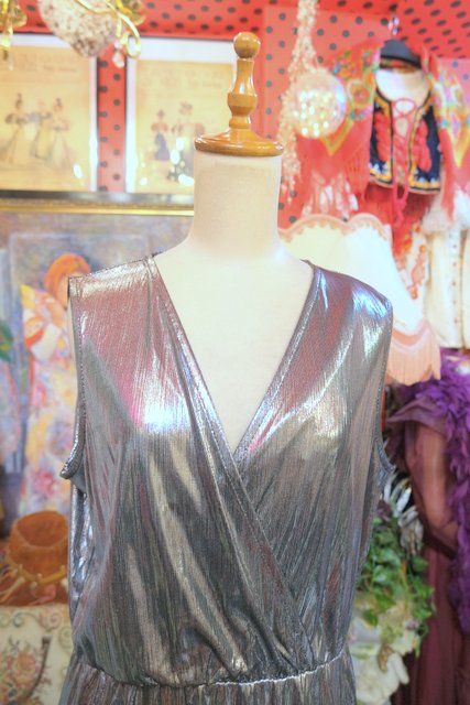 ヨーロッパ古着メタリックシルバーミニワンピース