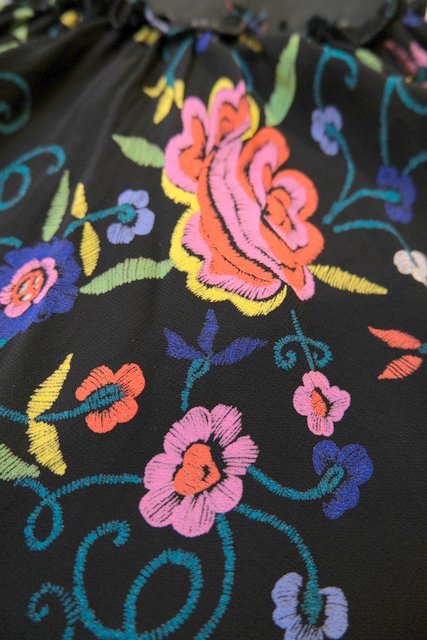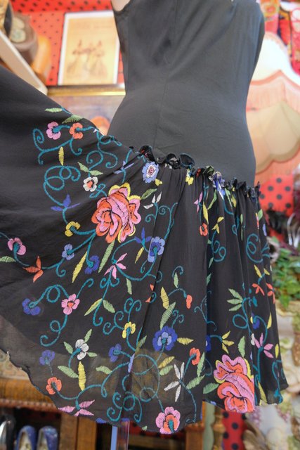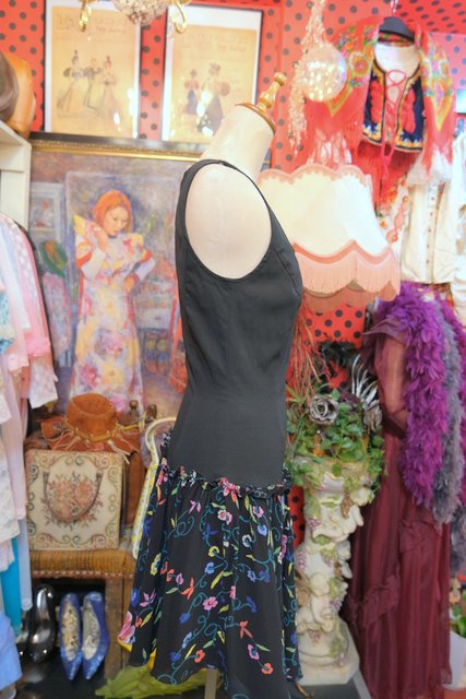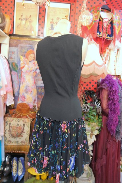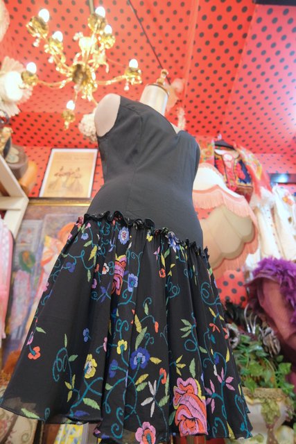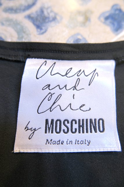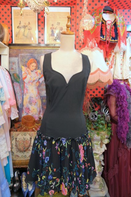 セクシーなハートネックにふんわり広がる刺繍プリントスカートが可愛らしいイタリア製MOSCHINO CHEAP&CHICミニワンピース