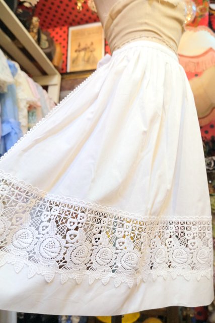 華やかで繊細な花柄レースが魅力的な1970年代頃のヨーロピアンヴィンテージチロルエプロン ドレスやスカートにプラスするだけでアンティークガールに変身するお洒落アイテム!