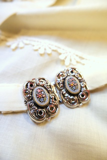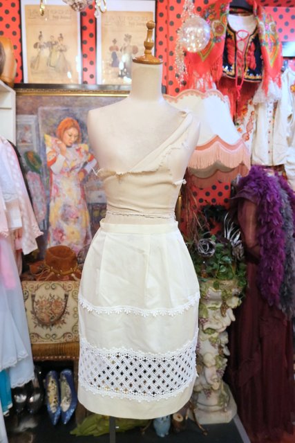 華やかで繊細なレースやアンティーク金具が魅力的な1970年代頃のヨーロピアンヴィンテージチロルエプロン ドレスやスカートにプラスするだけでアンティークガールに変身するお洒落アイテム!