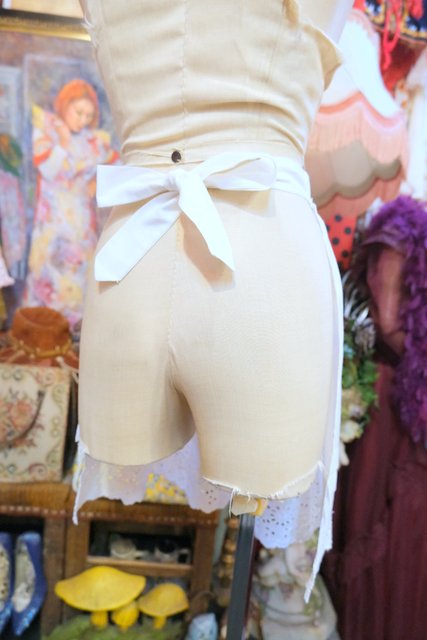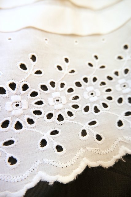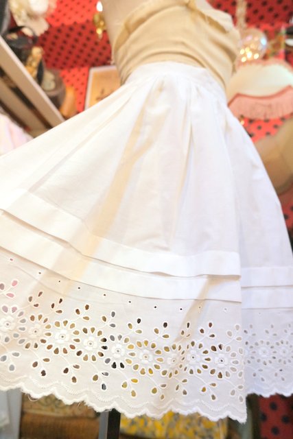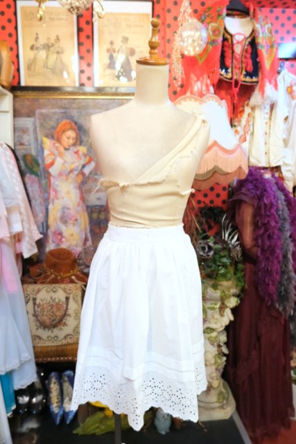 レトロガーリーな花柄カットワークレースが魅力的な1970年代頃のヨーロピアンヴィンテージチロルエプロン デニムパンツやスカート、ワンピースなどのアクセントのポイントにおススメ!