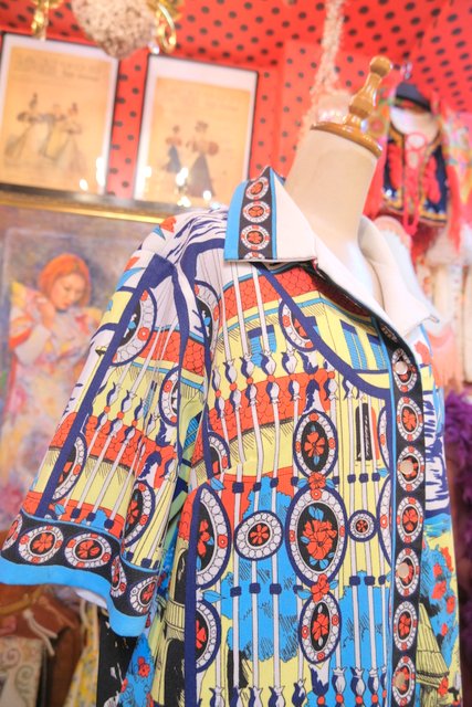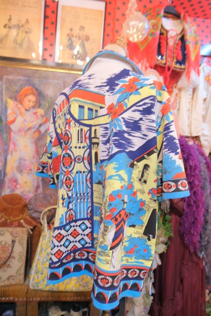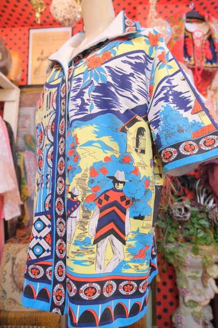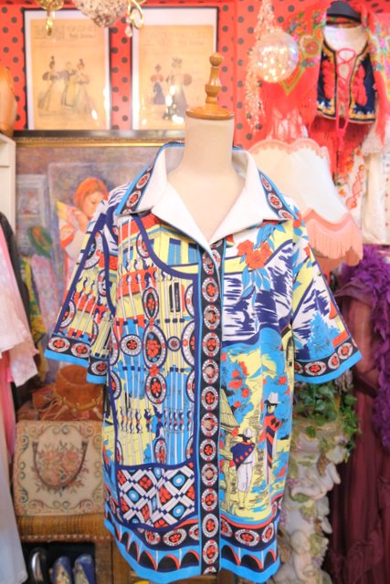 カラフルな民族衣装の男性や風景画、レトロモダンなプリントが目を惹く1970年代のヨーロピアンオーバーサイズシャツ