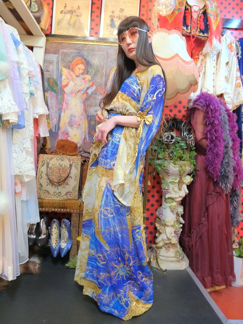ヨーロッパ古着エレガントアートエスニックロングドレス