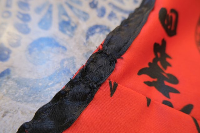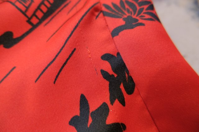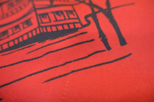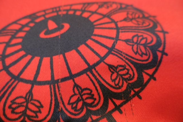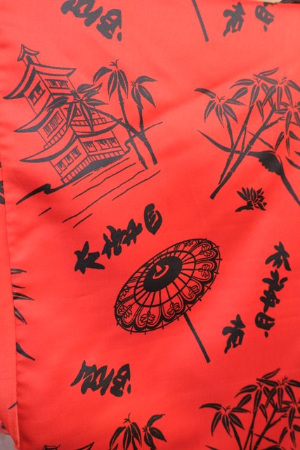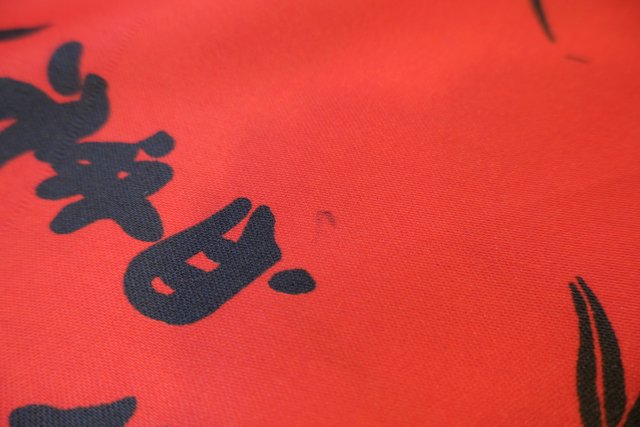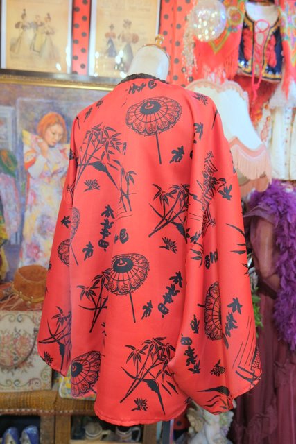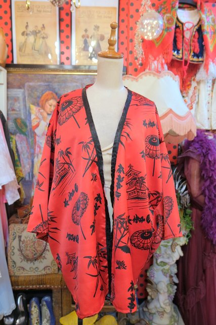 個性的な赤ベースに和モダンな総柄が目を惹くヨーロピアンヴィンテージガウン羽織